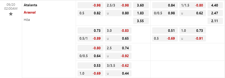 Soi kèo hiệp 1 Atalanta vs Arsenal
