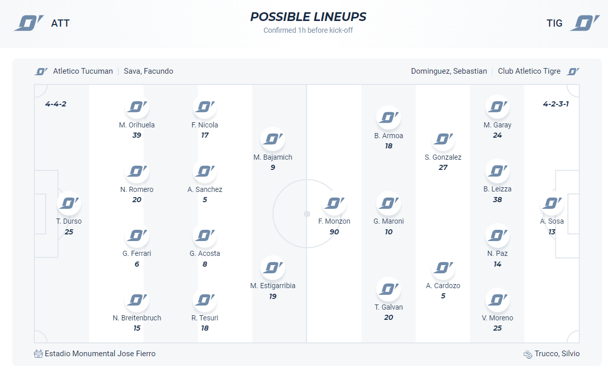 Atletico Tucuman đang đứng thứ 6 trên bảng xếp hạng, thành tích có tiến bộ so với vị trí thứ 11 mùa trước. Tuy nhiên đội bóng của HLV Facundo Sava đang chơi vô cùng tệ hại thời gian gần đây khi chỉ có 1 điểm ở 3 trận gần nhất, nếu không chơi tốt lên thì các cầu thủ Atletico Tucuman sẽ dẫn trôi xuống giữa bảng xếp hạng. Chính vì vậy Atletico Tucuman cần chiến thắng khi đón tiếp Tigre trên sân nhà, nhưng nhiều khả năng trước đội khách không dễ bị đánh bại thì đội chủ nhà sẽ chỉ có được 1 điểm trận này.