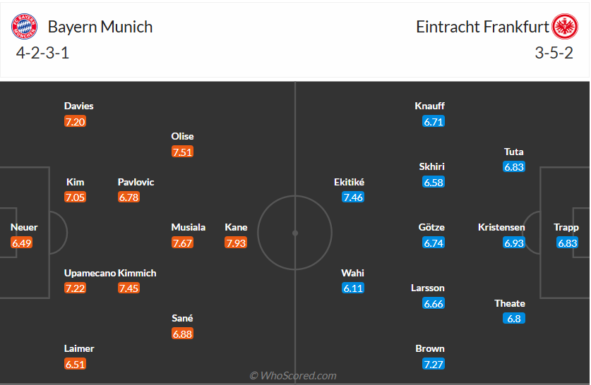 Trong 45 phút đầu tiên, Bayern sẽ là những người chơi tốt hơn và tạo ra nhiều cơ hội ghi bàn về phía khung thành Frankfurt, từ các cơ hội của mình nhiều khả năng bàn thắng mở tỉ số sẽ đến với họ để bước vào giờ nghỉ với lợi thế dẫn bàn. Chính vì vậy với tỉ lệ kèo Bayern chấp 0.75 thì người chơi nên đặt cửa cho Frankfurt thì cơ hội thắng cuộc cao hơn.