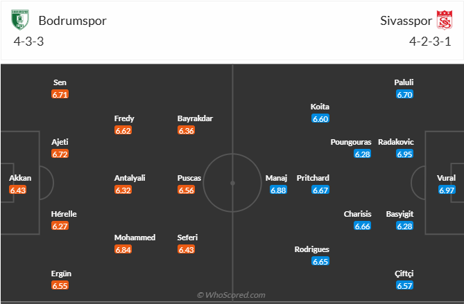 Vòng 16 giải vô địch Thổ Nhĩ Kỳ, Bodrum sẽ tiếp Sivasspor trên sân nhà với mục tiêu giành kết quả có lợi để cải thiện thứ hạng của mình. Đây không phải trận đấu dễ dàng với phong độ tệ hại thời gian gần đây của đội bóng chủ nhà.