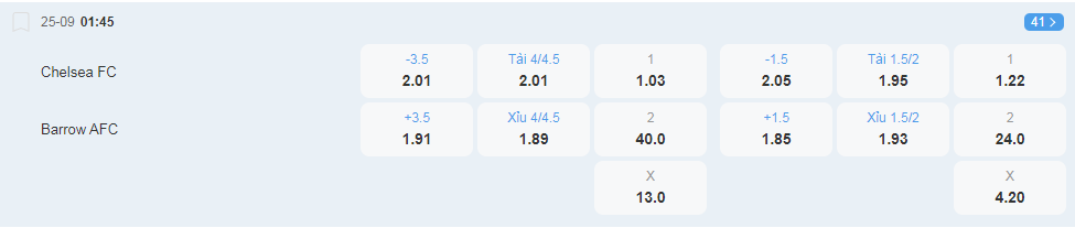 Tỷ lệ kèo Chelsea vs Barrow