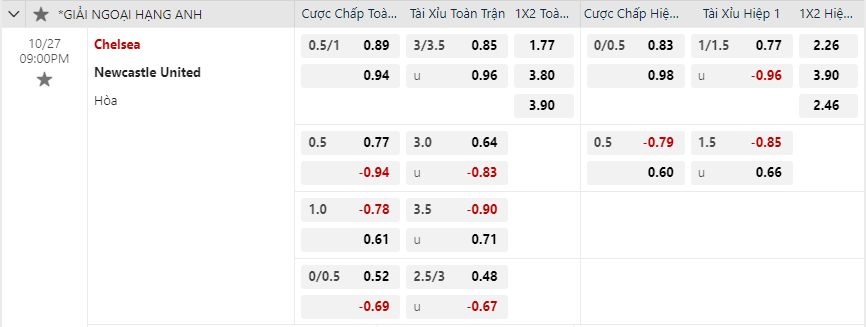 Soi kèo hiệp 1 Chelsea vs Newcastle United