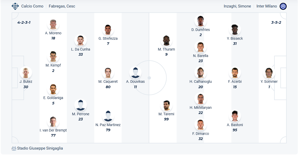 Como đang đứng thứ 10 trên bảng xếp hạng, với đội bóng mới lên hạng thì đây là vị trí rất tuyệt vời. Đội bóng của HLV Cesc Fabregas đang có phong độ cực tốt khi thắng 5, hòa 1 ở 6 vòng gần nhất nên họ rất tự tin ở vòng đấu cuối cùng này dù đã không còn mục tiêu nào. Tuy nhiên đối thủ của họ lại là đội bóng đang cạnh tranh chức vô địch Inter nên việc giữ chuỗi bất bại không dễ dàng. Nhiều khả năng dù đã chơi đầy cố gắng nhưng Como vẫn sẽ phải nhận thất bại.