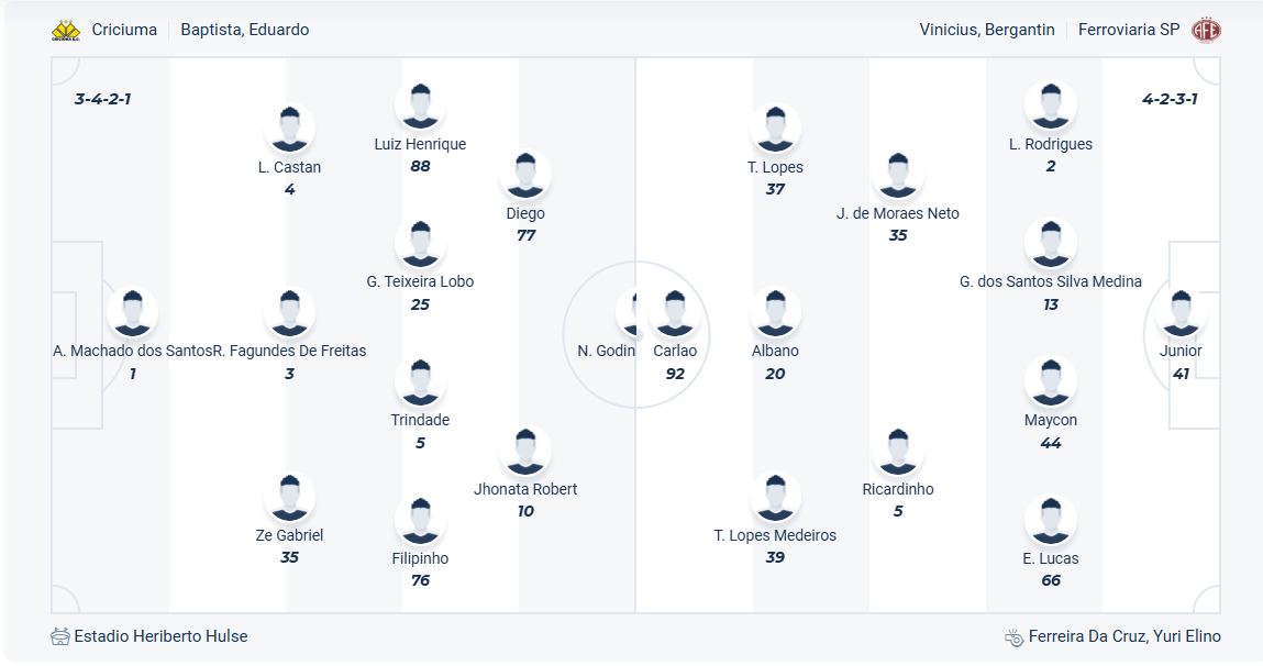 Khác với Criciuma mới bị xuống hạng, Ferroviaria lại là đội bóng mới thăng hạng từ Serie C từ mùa bóng này. Mục tiêu của 2 đội khác nhau nên việc ở thời điểm này Ferroviaria đứng cao hơn Criciuma trên bảng xếp hạng là điều rất bất ngờ. Tuy nhiên khoảng cách chỉ là 1 điểm và phong độ của thầy trò HLV Vinícius Bergantin cũng không hề tốt. Họ muốn chấm dứt chuỗi 2 trận thua liên tiếp để không tụt xuống sâu hơn nữa trên bảng xếp hạng nhưng đến làm khách trên sân của đội bóng mạnh như Criciuma không phải trận đấu dễ dàng. Rất có thể Ferroviaira sẽ không thể có điểm ra về.
