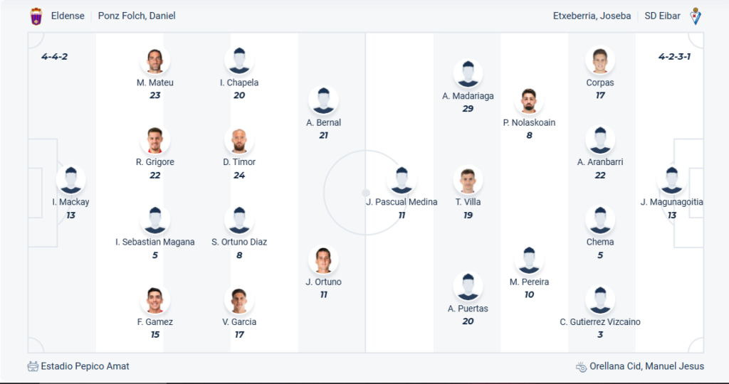 Eldense đang không có phong độ tốt, họ hòa 3 và thua 3 trong 6 vòng gần nhất cùng vị trí thứ 19 trên bảng xếp hạng. Đây là thành tích kém hơn mùa trước của thầy trò HLV Dani Ponz và họ cần chơi tốt hơn mới có thể trụ hạng vào cuối mùa. Các cầu thủ Eldense đặt quyết tâm cao nhất ở vòng đấu thứ 22 này để có chiến thắng sau chuỗi trận toàn hòa và thua, Eibar ở thời điểm này không phải đối thủ quá khó chơi và nhiều khả năng Eldense sẽ chơi tốt trận này để chấm dứt chuỗi trận kém cỏi vừa qua.