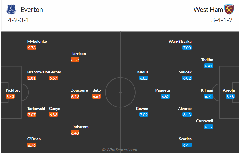 Everton đã thực sự lột xác dưới thời HLV David Moyes, họ bất bại từ khi ông trở lại nắm quyền và đã leo lên vị trí thứ 15 trên bảng xếp hạng, đứng ngay trên West Ham. Với 33 điểm đang có thì nguy cơ xuống hạng của Everton gần như không còn nhưng đội bóng vùng Merseyside vẫn sẽ muốn chơi tốt trong phần còn lại của mùa giải để có vị trí cao nhất có thể. Họ đặt mục tiêu giành chiến thắng trước West Ham ở vòng 29 này, trước đối thủ đang không có phong độ ổn định thì nhiều khả năng Everton sẽ có 3 điểm trọn vẹn.