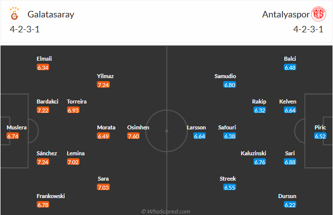 Galatasaray đang hơn đội nhì bảng Fenerbahce 7 điểm và đá nhiều hơn 1 trận, họ có lợi thế trong cuộc đua giành chức vô địch nhưng còn nhiều biến số xảy ra ở phía trước nên đội bóng của HLV Okan Buruk cần tiếp tục giành chiến thắng trong các trận đấu của mình. Vậy nên khi đón tiếp Antalyaspor ở vòng đấu thứ 27 thì 3 điểm là điều duy nhất mà Galatasaray hướng đến, trước đối thủ đang đứng giữa bảng xếp hạng thì nhiều khả năng đội bóng chủ nhà sẽ chơi đủ tốt để có 3 điểm trọn vẹn.