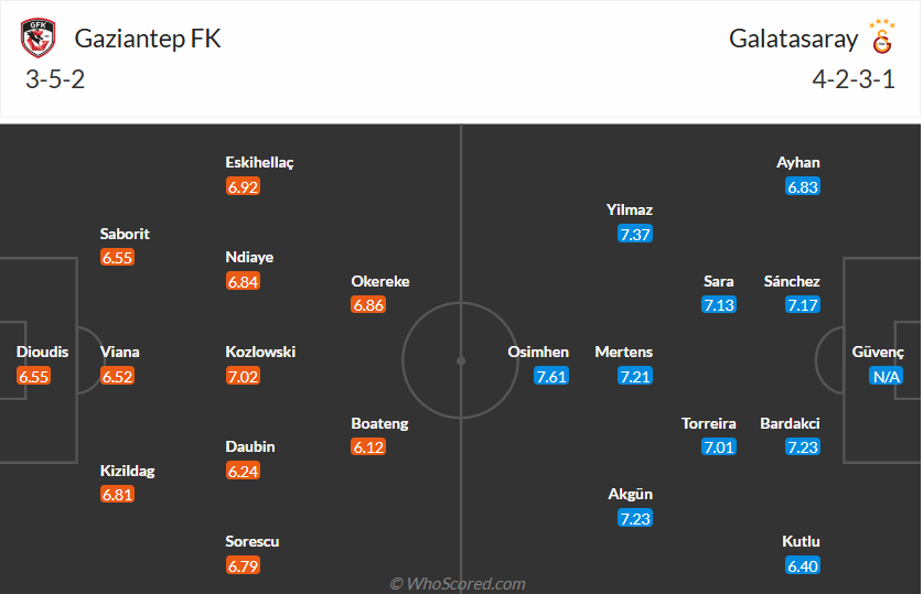 Galatasaray đang đứng đầu bảng với khoảng cách 6 điểm nhiều hơn đội đứng sau, đây là một khoảng cách khá an toàn và cơ hội giành chức vô địch của đội bóng này mùa giải năm nay là rất lớn. Với phong độ tốt thời gian gần đây thì các cầu thủ Galatasaray hoàn toàn tự tin vào một kết quả tốt nữa ở vòng đấu thứ 21 này. Đến làm khách trên sân của Gaziantep không phải trận đấu quá khó khăn và nhiều khả năng phần thắng trận này sẽ thuộc về đội bóng đầu bảng bởi họ được đánh giá mạnh hơn đội chủ nhà khá nhiều.