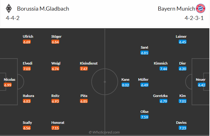 Gladbach đang đứng thứ 8 trên bảng xếp hạng, thành tích chưa thể nói là tốt nhưng so với vị trí thứ 14 mùa giải trước thì đã ổn hơn rất nhiều. Phong độ của thầy trò HLV Gerardo Seoane thời gian gần đây cũng là rất tốt khi họ thắng cả 2 vòng đấu gần nhất, các cầu thủ Gladbach muốn giành thêm một kết quả tích cực nữa khi tiếp đón Bayern trên sân nhà nhưng trước đối thủ rất mạnh thì xem ra cơ hội có điểm là không cao. Nhiều khả năng Gladbach sẽ để thua trận này.