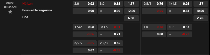 Soi kèo châu Á Hà Lan vs Bosnia & Herzegovina