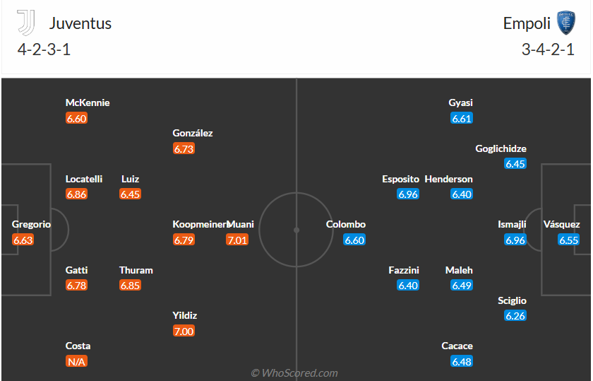 Juventus đã để thua trận đầu tiên của mình tại Serie A ở vòng đấu trước, đội bóng của HLV Thiago Motta sau đó tiếp tục để thua tại Champions League và họ chỉ thắng 1/6 trận gần nhất của mình. Nếu cứ tiếp tục chơi không tốt thì mùa giải của Juventus sẽ thất bại hoàn toàn chính vì vậy họ cần một chiến thắng ở vòng đấu thứ 23 này. Empoli là đội bóng yếu nên là cơ hội tốt để Juventus có chiến thắng sau chuỗi trận toàn hòa và thua. Nhiều khả năng đội bóng chủ nhà sẽ không gặp nhiều khó khăn để có 3 điểm trận này.
