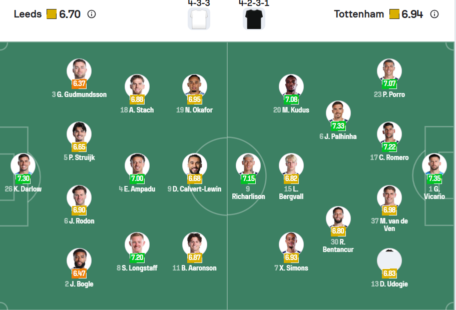 Tottenham tiếp tục đặt mục tiêu ít nhất phải giành vé dự Champions League mùa này. Sau khi chấm dứt cơn khát danh hiệu mùa trước thì đội bóng London muốn làm nhiều hơn thế, HLV Thomas Frank được bổ nhiệm với mục tiêu đó nhưng họ chơi chưa đúng như kỳ vọng khi vừa để hòa 3 trận liên tiếp trước các đối thủ yếu hơn. Chính vì vậy các cầu thủ Tottenham cần chiến thắng ở vòng đấu thứ 7 này, đến làm khách trên sân đội bóng mới thăng hạng Leeds là cơ hội tốt để có được điều đó và nhiều khả năng Tottenham sẽ ra về với 3 điểm trọn vẹn.