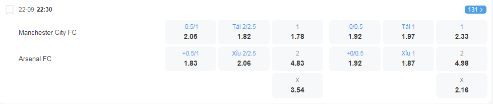 Soi kèo châu Á Manchester City vs Arsenal