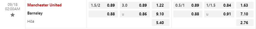 Tỷ lệ kèo Manchester United vs Barnsley
