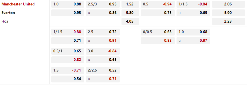 Soi kèo châu Á Manchester United vs Everton: 0.88*1.25*0.71