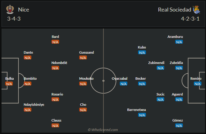 Sociedad không có thực lực mạnh tại Tây ban nha nhưng cũng chơi tương đối tốt tại La Liga mùa trước khi cán đích ở vị trí thứ 6, tuy nhiên mùa này đội bóng của HLV Imanol Alguacil đang chơi rất tệ khi chưa có được chiến thắng nào sau 6 vòng đấu và đang đứng trong nhóm xuống hạng. Với phong độ này thì mọi trận đấu của Sociedad đều rất khó khăn, họ sẽ phải đến làm khách trên sân của Nice tại lượt trận đầu tiên Europa League. Phong độ không tốt nên chuyến làm khách này rất khó khăn, nhiều khả năng Sociedad sẽ tiếp tục phải nhận trận thua.