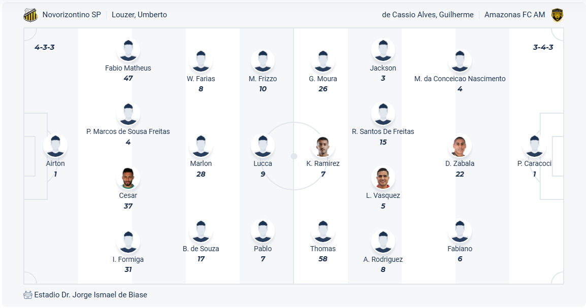 Novorizontino đặt mục tiêu thăng hạng mùa này, họ đang chơi cực ổn khi đang đứng thứ 2. Tuy nhiên Novorizonino đã không thể leo lên vị trí đầu bảng khi để thua ở vòng đấu trước, trận thua chấm dứt mạch trận toàn thắng của họ. Rõ ràng đây là kết quả rất đáng thất vọng và các cầu thủ Novorizontino cần ngay lập tức trở lại với chiến thắng để giữ vị trí của mình trước khi nghĩ đến ngôi đầu bảng. Chỉ phải gặp đội bóng đang trong nhóm cuối bảng Amazonas là cơ hội không thể tốt hơn với Novorizontino và nhiều khả năng họ sẽ chơi đủ tốt để có 3 điểm trận đấu này.
