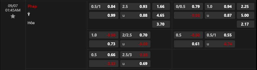 Đáng chú ý là 6 trong 7 trận đấu gần nhất của Pháp có dưới 2,5 bàn thắng, cho thấy một sự chắc chắn trong hệ thống phòng ngự, mặc dù khả năng tấn công vẫn còn thiếu sự ổn định. Còn về phía đội tuyển Ý đã không ghi bàn ở 2/3 trận đấu gần nhất, cho thấy sự bế tắc trong lối chơi và khả năng tìm kiếm mảnh lưới đối phương. Do đó kèo Xỉu sẽ là lựa chọn hợp lý dành cho người chơi ở trận đấu này. Mời các bạn cùng xem trực tiếp bóng đá trên kênh Xoi Lac TV.