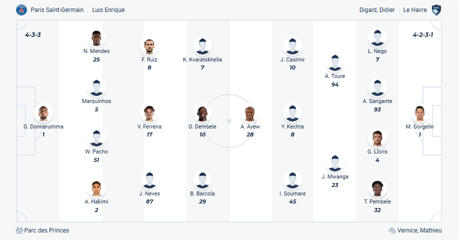 PSG đã chắc chắn vô địch quốc gia và họ còn đứng trước cơ hội giành cú ăn 3 lịch sử khi đã vào đến bán kết Champions League. Dù vậy các trận đấu còn lại của Ligue 1 thì đội bóng của HLV Luis Enrique vẫn sẽ ra sân chơi hết mình với mục tiêu giành chiến thắng để giữ phong độ tốt trước các trận quan trọng tại đấu trường Châu Âu. Chính vì vậy họ vẫn được đánh giá khả năng thắng rất lớn khi đón tiếp Le Havre trên sân nhà ở vòng đấu 30 này, trước đối thủ yếu hơn rất nhiều thì PSG được dự đoán không gặp nhiều khó khăn để có chiến thắng đậm.