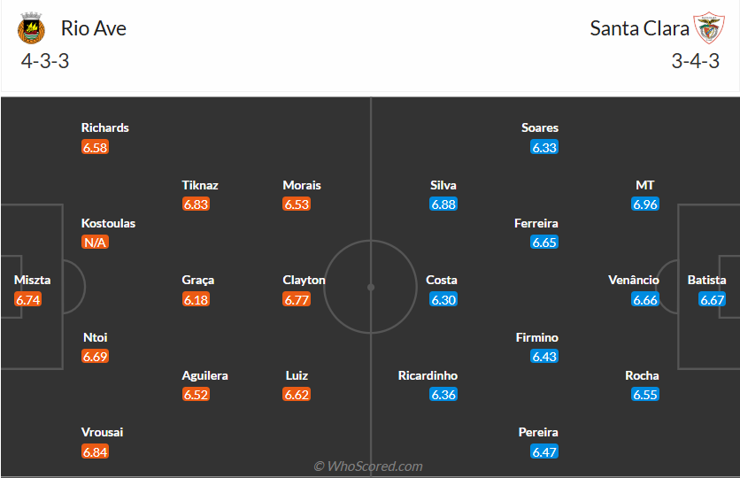 Santa Clara là đội mới thăng hạng mùa này tuy nhiên họ chơi rất ổn, đội bóng của HLV Vasco Matos đang đứng thứ 6 trên bảng xếp hạng và hoàn toàn không phải lo nghĩ đến việc trụ hạng mùa này. Tuy nhiên phong độ của Santa Clara không tốt thời gian qua khi chỉ thắng 2 trong 6 vòng gần nhất, họ vừa để thua 2 trận liên tiếp và nếu không chơi tốt hơn thì sẽ tụt xuống sâu hơn trên bảng xếp hạng. Chính vì vậy Santa Clara cần một chiến thắng ở vòng đấu thứ 30 này, đến làm khách trên sân của Rio Ave không phải quá khó khăn và nhiều khả năng họ sẽ có 3 điểm ra về.