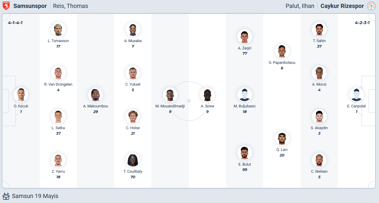 Samsunspor đứng thứ 3 mùa trước, vị trí rất ổn so với tiềm lực của đội bóng này. Mùa giải năm nay đội bóng của HLV Thomas Reis muốn làm được hoặc làm hơn như thế, chính vì vậy người hâm mộ không thể hài lòng khi họ đang đứng thứ 7 trên bảng xếp hạng. Nguyên nhân của việc này do Samsunspor để hòa quá nhiều khi họ hòa tới 3/5 vòng gần nhất. Samsunspor cần chiến thắng ở vòng đấu thứ 10 này để bám đuổi các đội xếp trên, trước đối thủ yếu hơn và đang chơi không tốt là Rizespor thì khả năng đội chủ nhà sẽ đạt được mục đích.