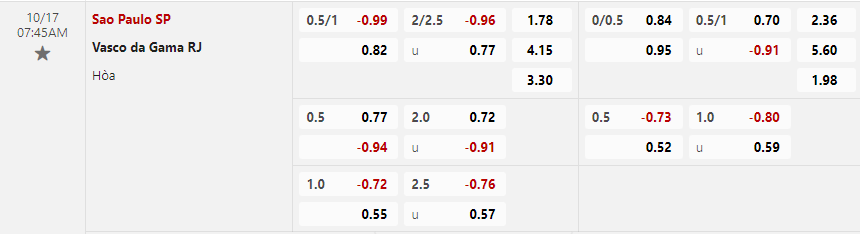 Soi kèo châu Á Sao Paulo vs Vasco da Gama