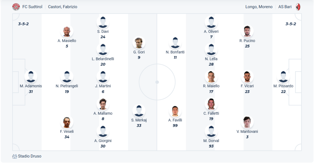 Sudtirol không phải đội bóng mạnh của Serie B, họ đang đứng thứ 11 trên bảng xếp hạng, so với vị trí thứ 12 mùa trước thì đội bóng của HLV Fabrizio Castori đang thể hiện bộ mặt trương tự. Với vị trí nà thì Sudtirol không còn nhiều mục tiêu trong phần còn lại của mùa giải, tuy nhiên chuỗi trận có phong độ tốt thời gian gần đây (3 thắng, 1 hòa trong 4 vòng gần nhất) khiến họ rất tự tin trong trận đấu cuối cùng của mùa giải. Vậy nên Sudtiro được dự đoán sẽ chơi tốt trước Bari và không để thua trận này.