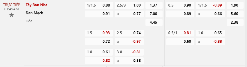 Soi kèo hiệp 1 Tây Ban Nha vs Đan Mạch