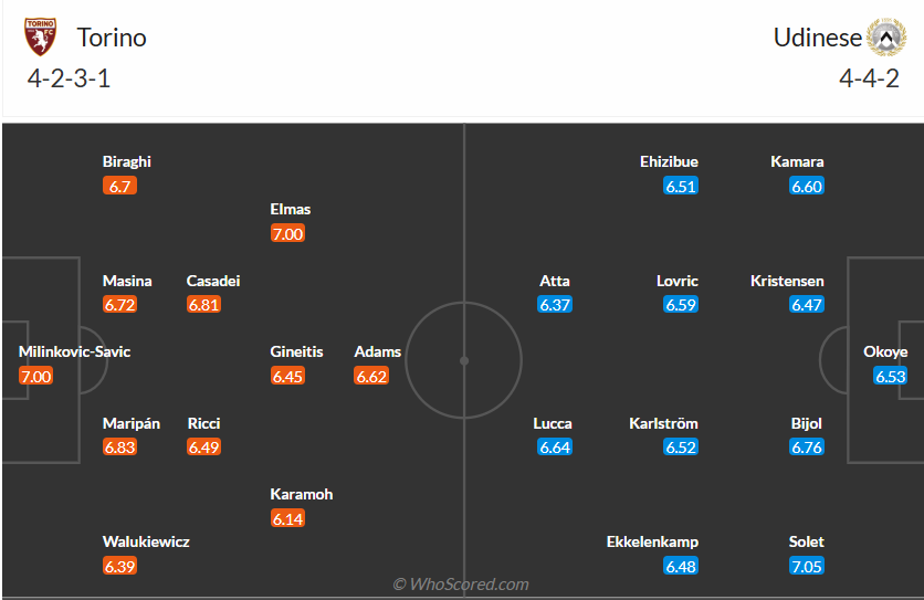 Torino đang đứng thứ 10 trên bảng xếp hạng, họ đứng trên Udinese dù bằng điểm dù không chơi tốt trong thời gian gần đây. Vị trí này tương đương với những gì đội bóng của HLV Paolo Vanoli làm được mùa trước và các cầu thủ Torino muốn làm tốt hơn trong phần còn lại của mùa giải để cải thiện thứ hạng của mình. Chỉ phải gặp một Udinese đang chơi rất tệ là cơ hội tốt để Torino có chiến thắng và nhiều khả năng đội bóng chủ nhà sẽ có được điều mình cần.