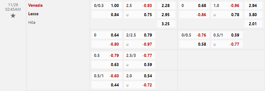 Soi kèo tài xỉu Venezia vs Lecce: 0.97*2.25*0.79