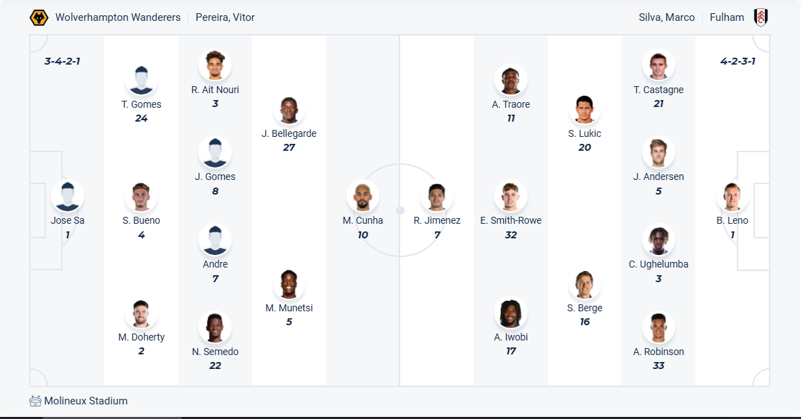 Fulham từ khi trở lại Premier League vẫn chơi ổn định, họ thường đứng ở giữa bảng xếp hạng và không gặp nhiều khó khăn trong việc thực hiện mục tiêu trụ hạng đầu mùa giải. Mùa giải này cũng không là ngoại lệ khi đội bóng của HLV Marco Silva đang đứng thứ 10 và đã đủ điểm trụ hạng. Trong các trận còn lại các cầu thủ Fulham chỉ cố gắng chơi tốt để có vị trí cao nhất có thể, tinh thần thoải mái đó khi đến làm khách trên sân của Wolves nhiều khả năng sẽ giúp Fulham chơi tốt để có 3 điểm ra về ở vòng 27 này.